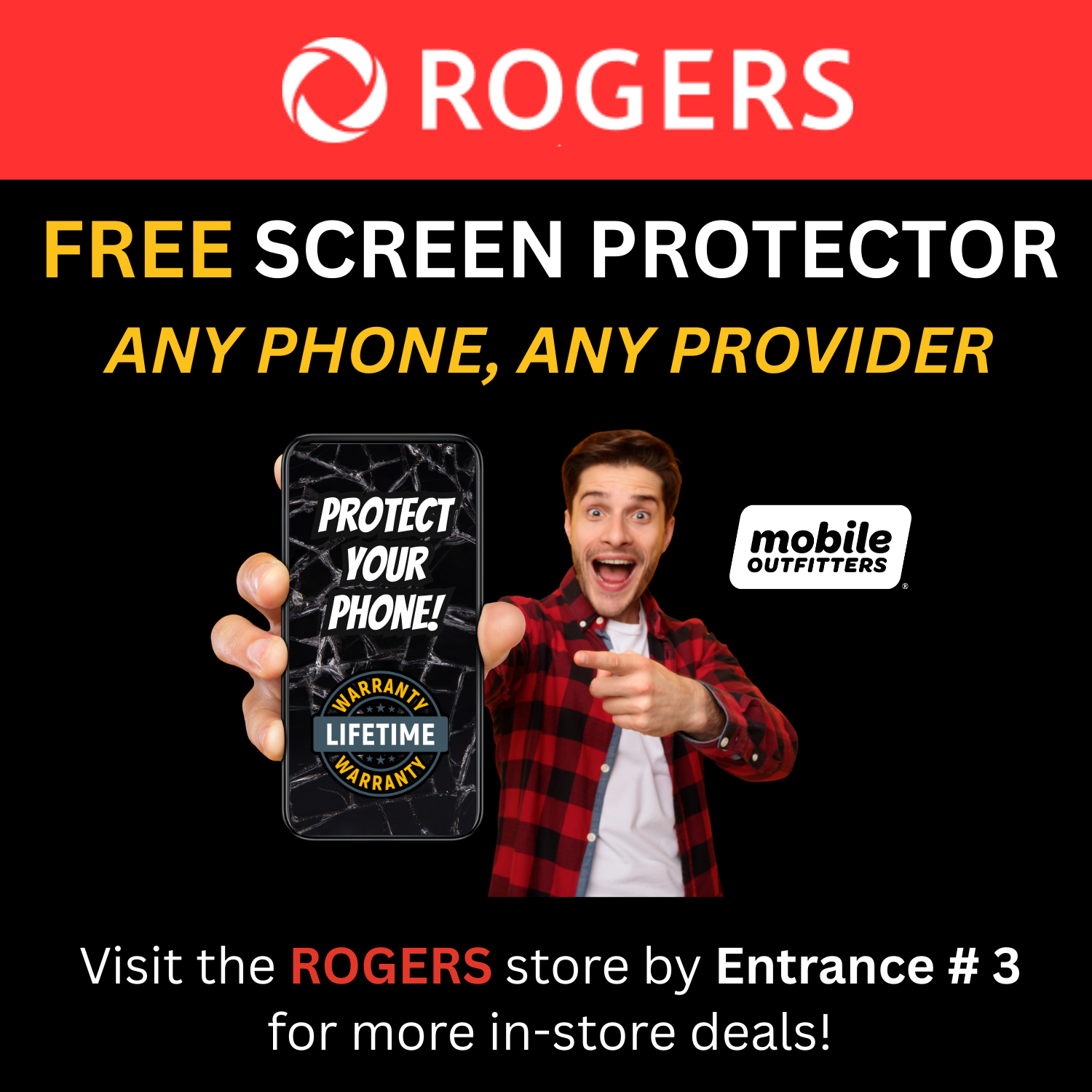 Get a FREE Screen Protector – ANY Phone, ANY provider! Visit the ROGERS store by Entrance 3 to claim yours today and for more amazing wireless and internet deals.